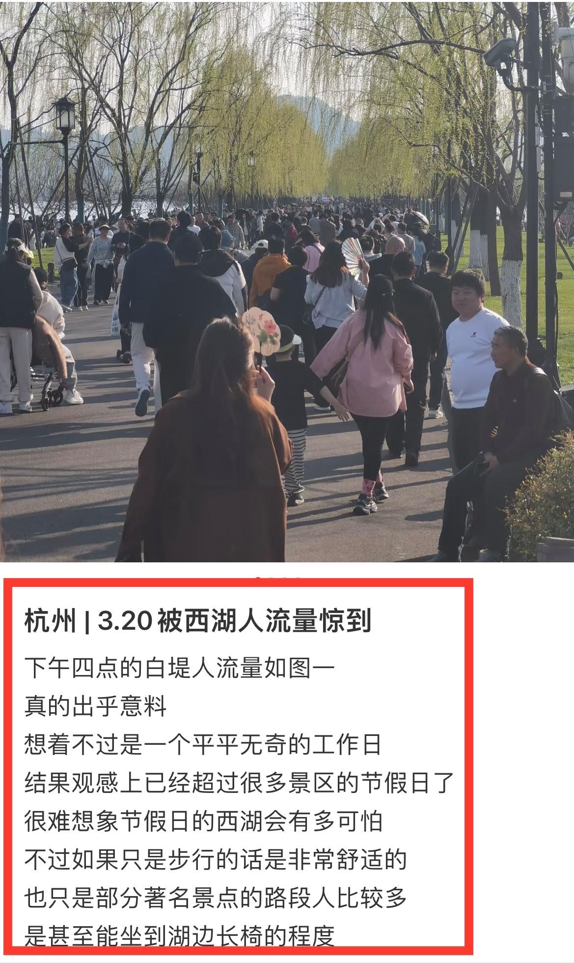 5、也有网友认为:感觉西湖景区在规避旅游团,特别是老年团,大巴不让进,公交车等太久,走路太费腿,大爷大妈怎么走。