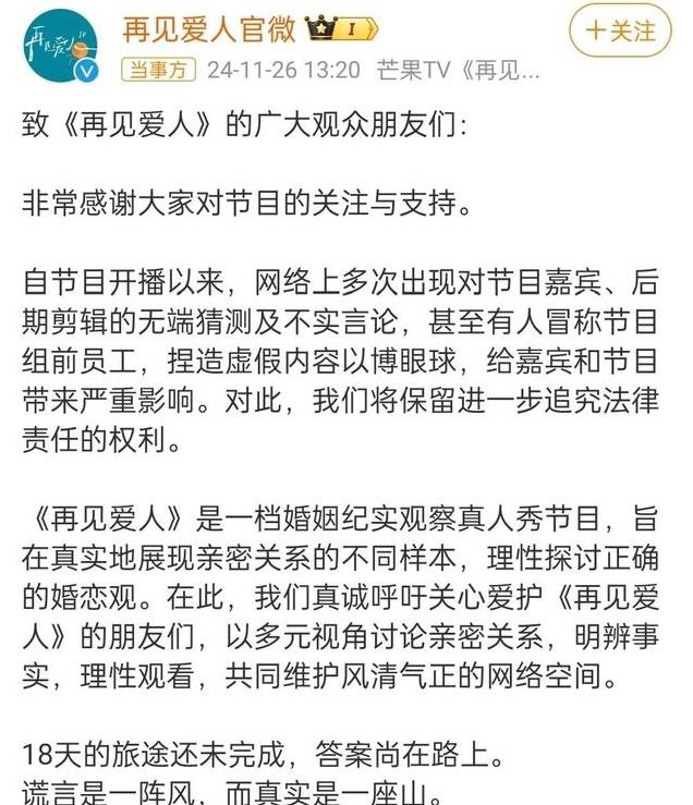 面对愈演愈烈的舆论风波,节目组最终选择了发声。他们在声明中否认了不实爆料,并维护了节目的真实性。