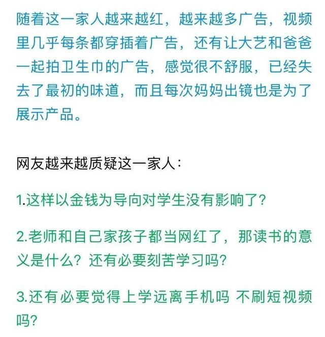 随着时间的流逝,王大艺一家的视频开始出现了广告和商业元素。 这引起了一些网友的不满,他们觉得视频变味了,甚至有人指责王大艺一家过度消费女儿。 面对这些声音,王爸爸回应说,他们只是普通人,拍视频是为了记录和改善生活,他们会把握好尺度。