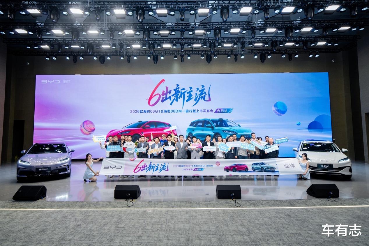 日前,以“6出新主流”为主题的2026款海豹06GT与海豹06DM-i旅行版合肥上市发布会圆满收官。这两款比亚迪海洋网的年度重磅新车,自4月2日全国上市以来便备受关注。此番登陆合肥,让媒体和用户共同见证了新车亮相,并深度体验了第二代刀片电池与闪充技术带来的极致补能效率。
