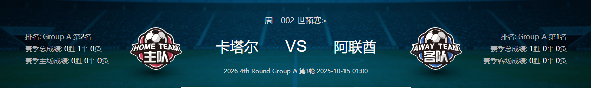 周二002世预赛卡塔尔VS阿联酋