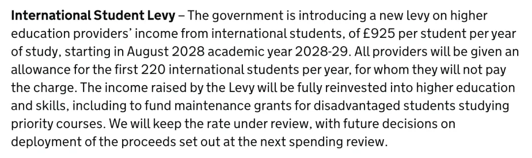免税额度:每所大学的前220名国际学生可免于此项税费,预计每所学校因此节省约20万英镑。