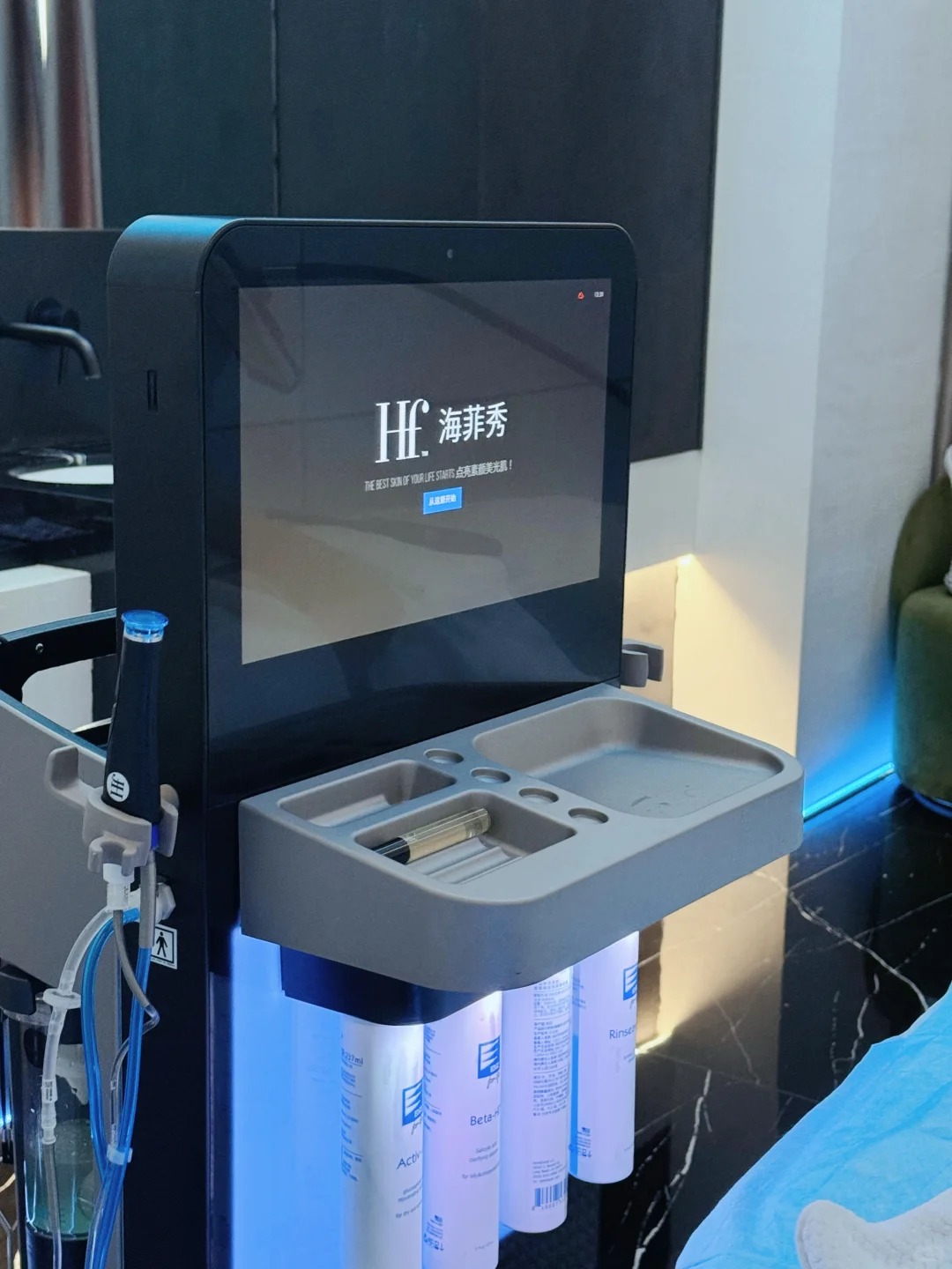 海菲秀采用专利的涡流技术,通过智能真空负压系统配合特殊设计的单次使用治疗头,实现"清洁-导出-滋养-保护"的四维一体化非侵入性治疗。
