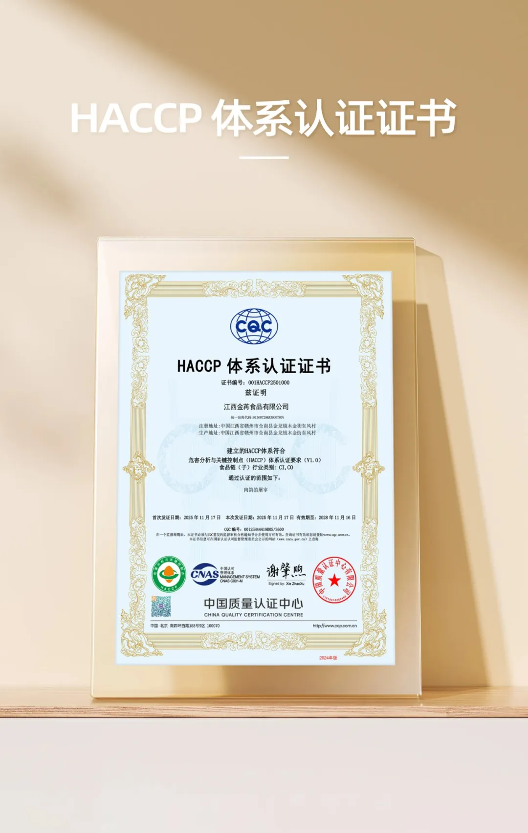 我们深信,真正的食品品牌,建立在持续的信任之上。HACCP认证是一份沉甸甸的责任,它督促我们以更严苛的眼光审视自身,用更透明的流程接受监督,只为让您吃得更放心、更健康。