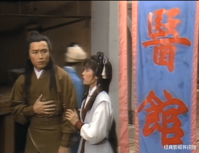 还记得杨康被蒙古人下毒的事吗?他中毒后,好巧不巧的闯进穆念慈家里,被穆念慈所救,两个人本来就有情,再次见面,自然要互诉衷肠一番,得知穆念慈对自己依旧深情一片的杨康,当下感慨自己时日不多,想到两个人之前的约定,想要一起去游山玩水,但是碍于杨康的病情,穆念慈并未答应,但是两个人有过一起到街上闲逛的情节,还到一家新开张的医馆看病,我们来看这时候杨康穆念慈的装束打扮,再对比这些疑似被删掉的画面,是不是一样的服装,只是杨康戴了有面纱的斗笠,估计是觉得自己中毒了气色不好才遮挡的,而穆念慈却是戴了个面具,我们再来看看街上的其他人,也都戴了面具,很显然,似乎是在庆祝什么,很热闹,于是两个人就一起出来凑热闹了,也权当是履行了他们之前的约定——游山玩水了。