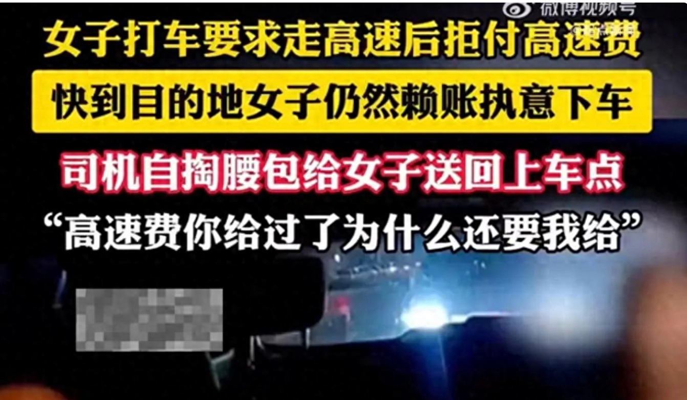 近日,广东发生一起打车纠纷。一名女子在乘坐网约车时要求司机走高速公路,却在即将到达目的地时拒绝支付高速通行费,最终被司机原路送回起点。