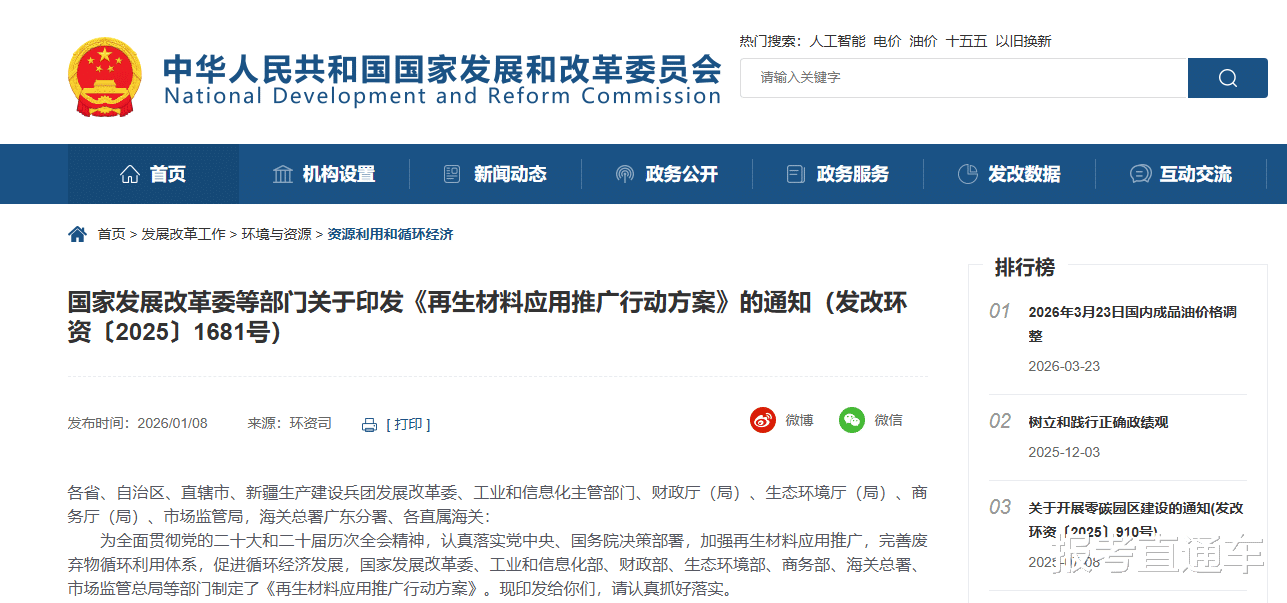 在2026年年初,国家发改委印发了《再生材料应用推广行动方案》,在该方案中,首次将“回收循环利用行动”列为国家战略,提出到2027年资源循环利用产业产值突破5万亿元。这一政策将对就业市场形成全链条、大规模、结构性的长期影响,势必大幅拉动循环科学领域的直接就业,也会重塑能源相关岗位结构与就业格局。