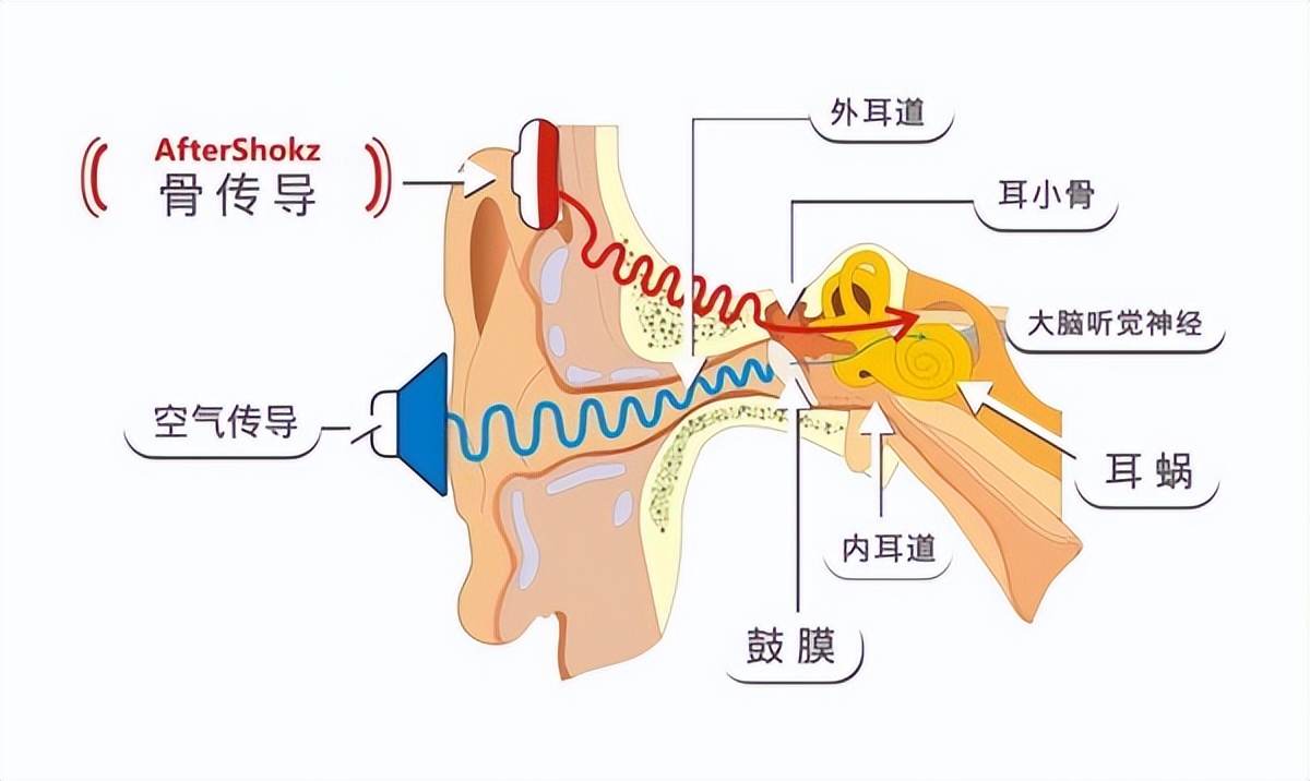 另一种是骨传导的,靠骨头振动传声音,声音直接传到听觉部位,同样不用堵耳道。