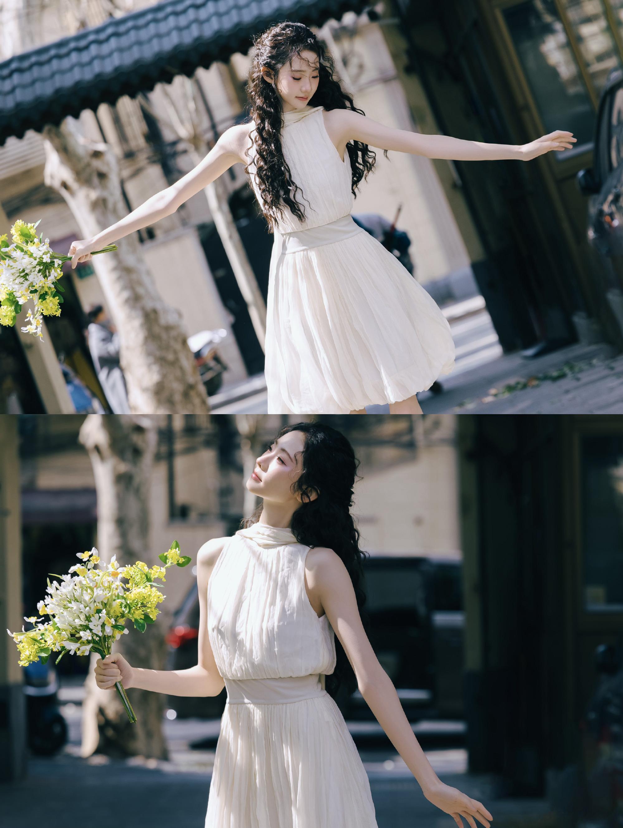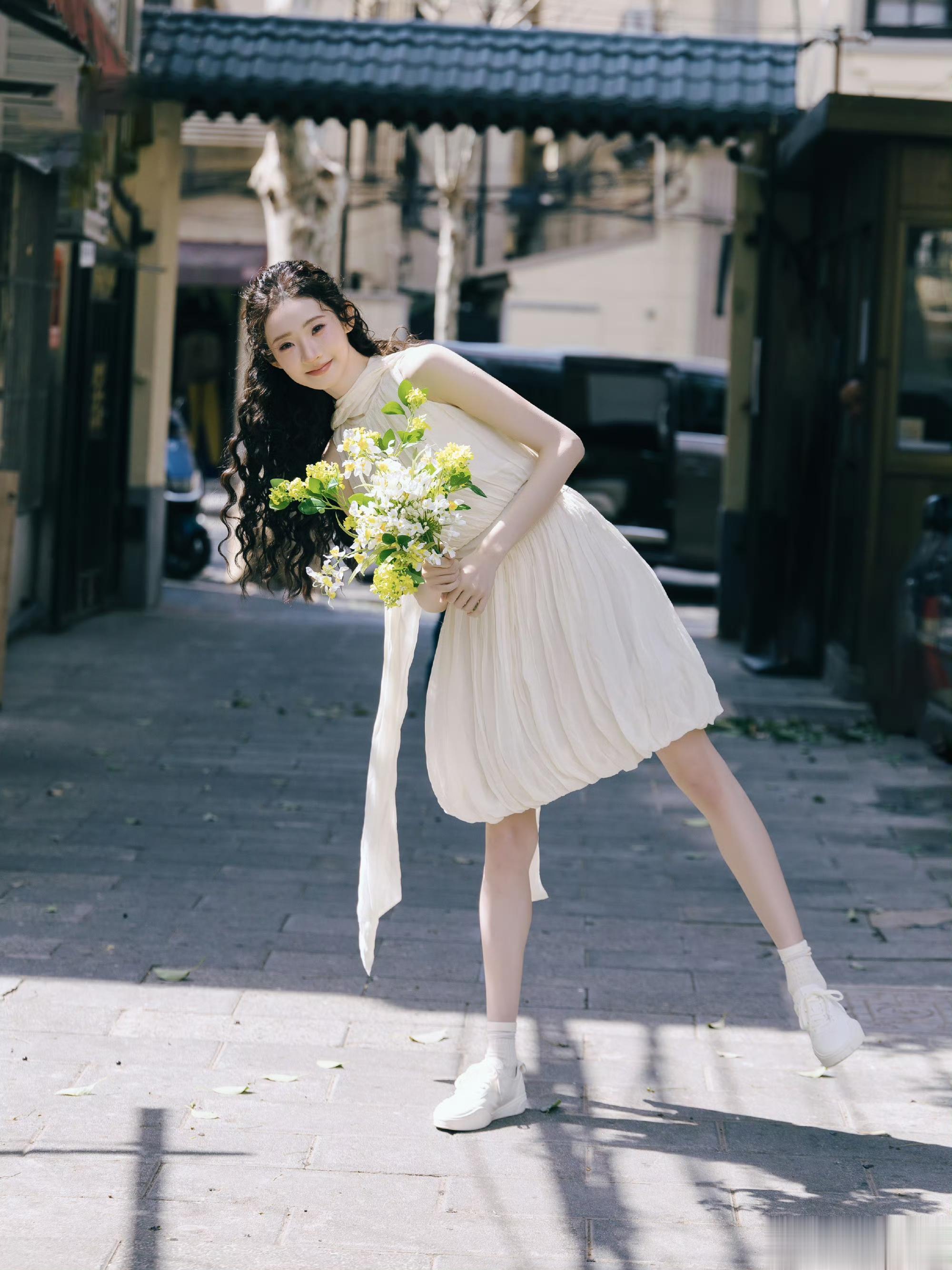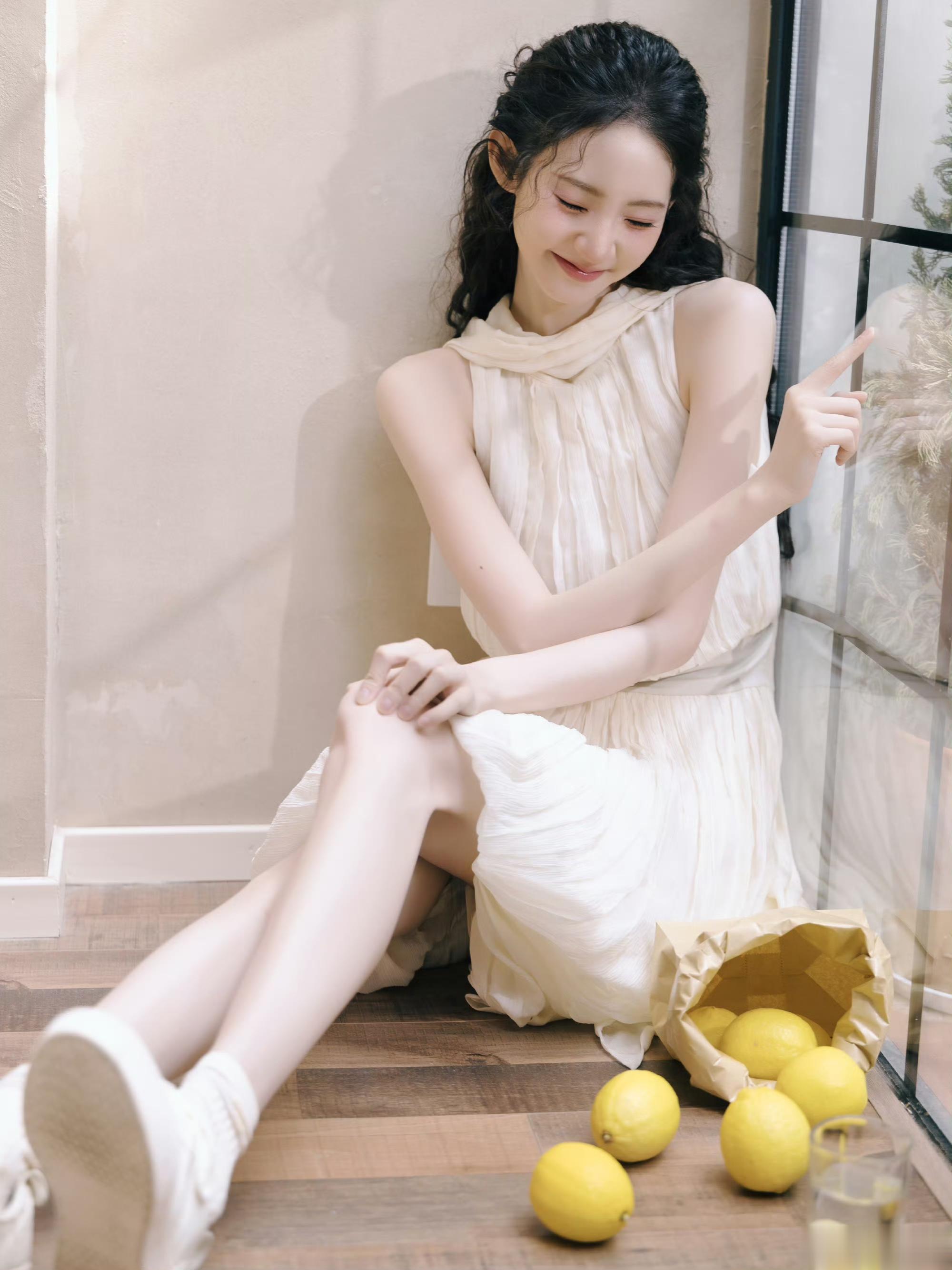 张艺凡纯白连衣裙