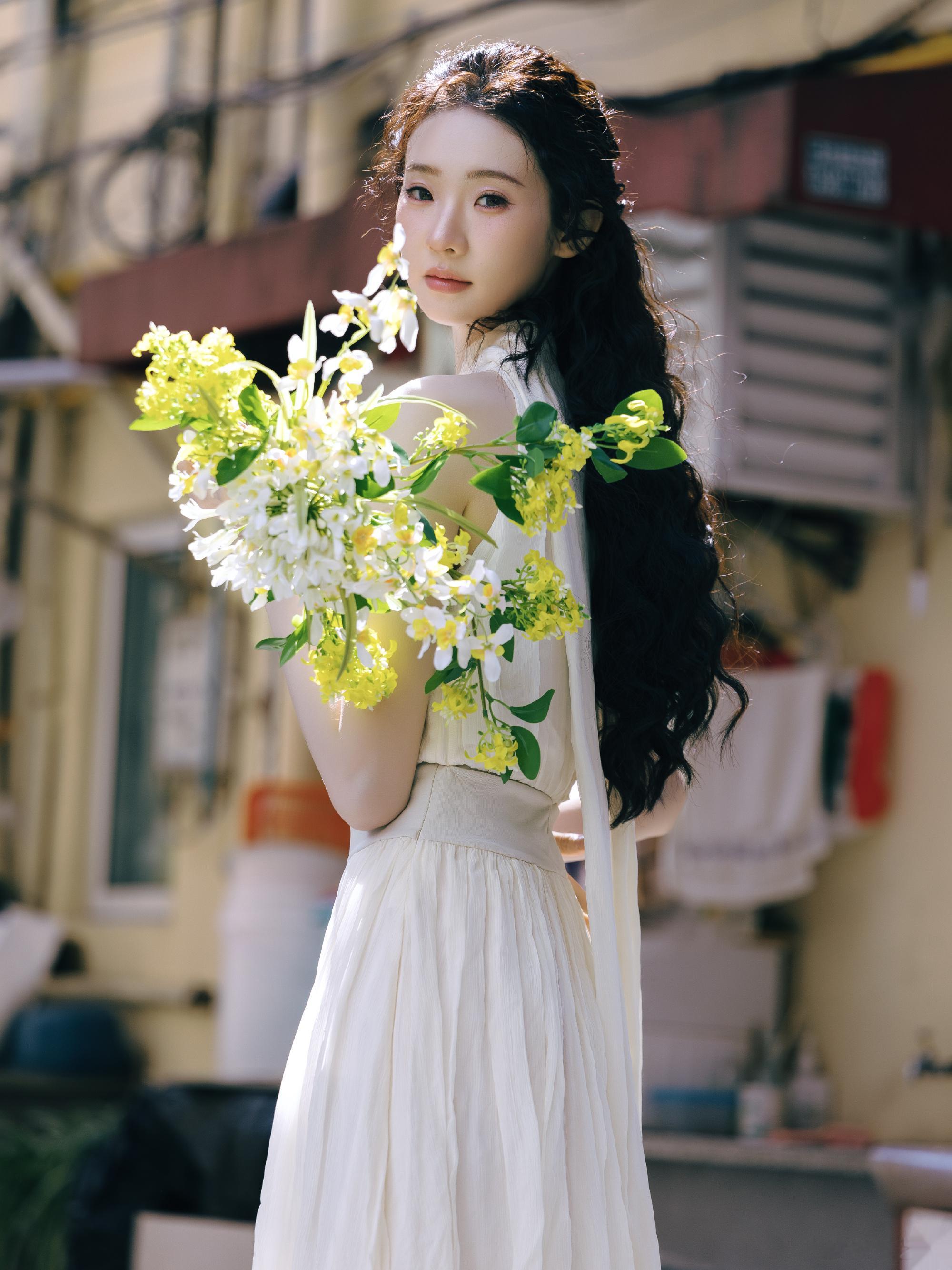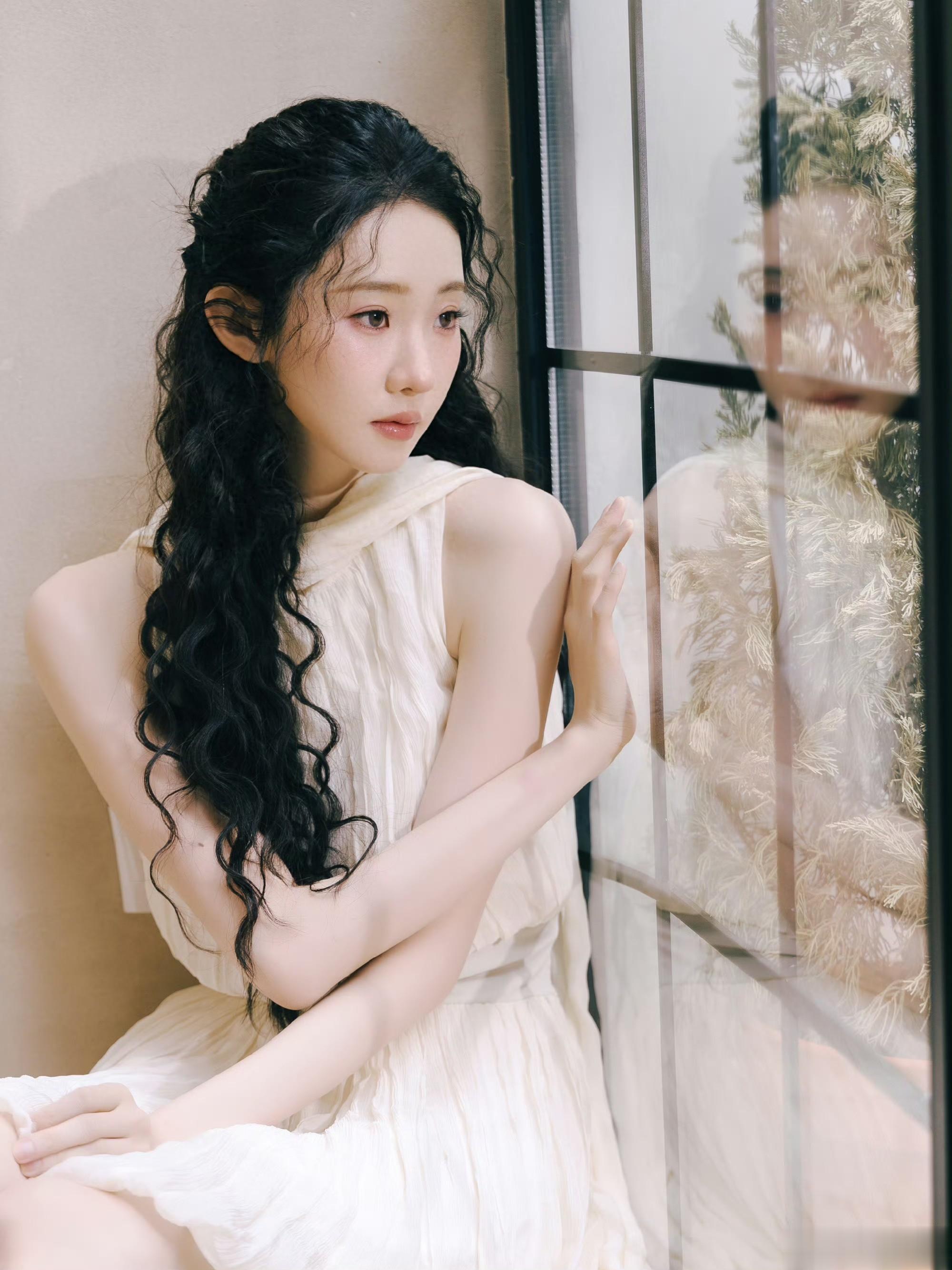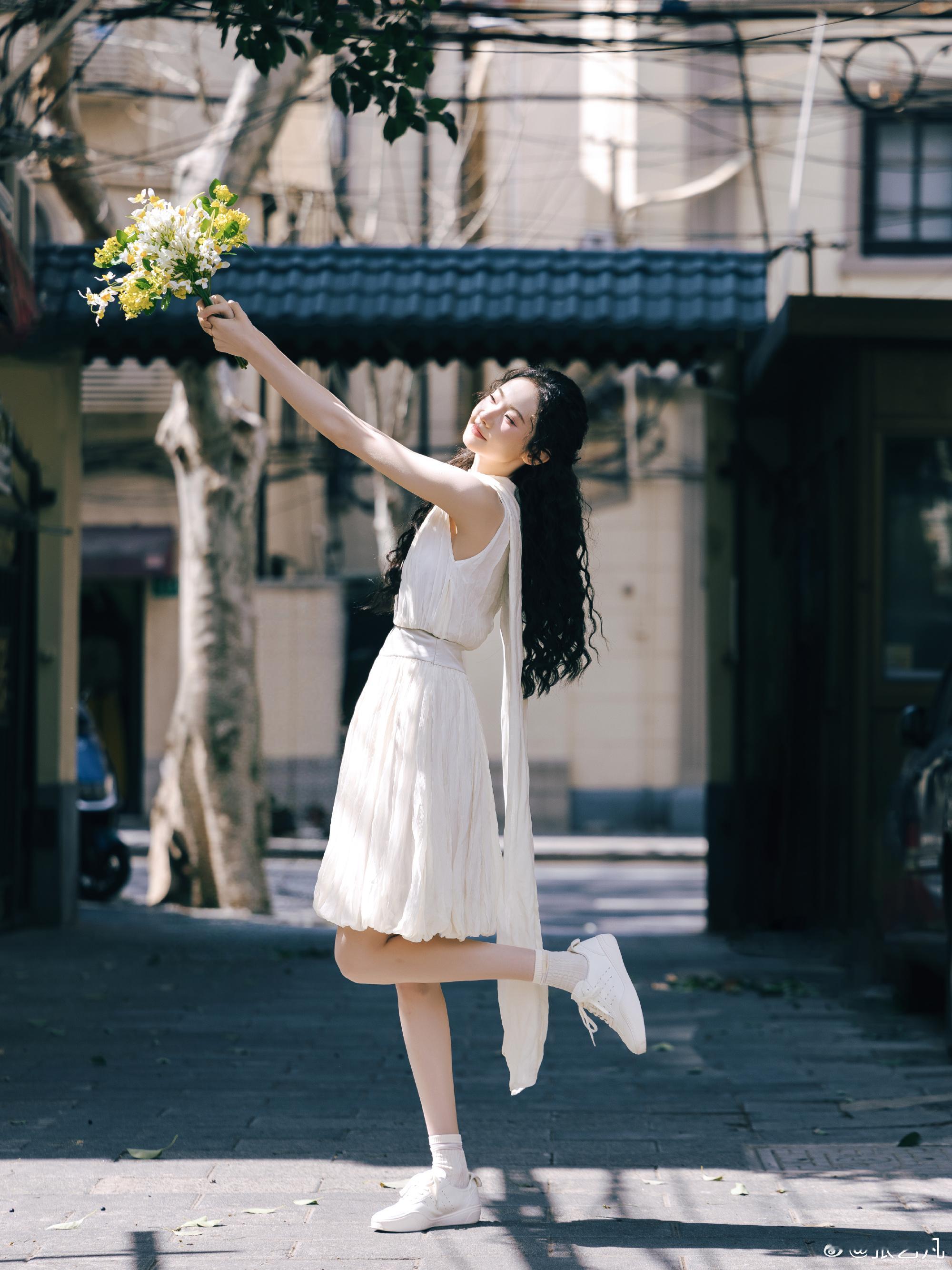 张艺凡纯白连衣裙