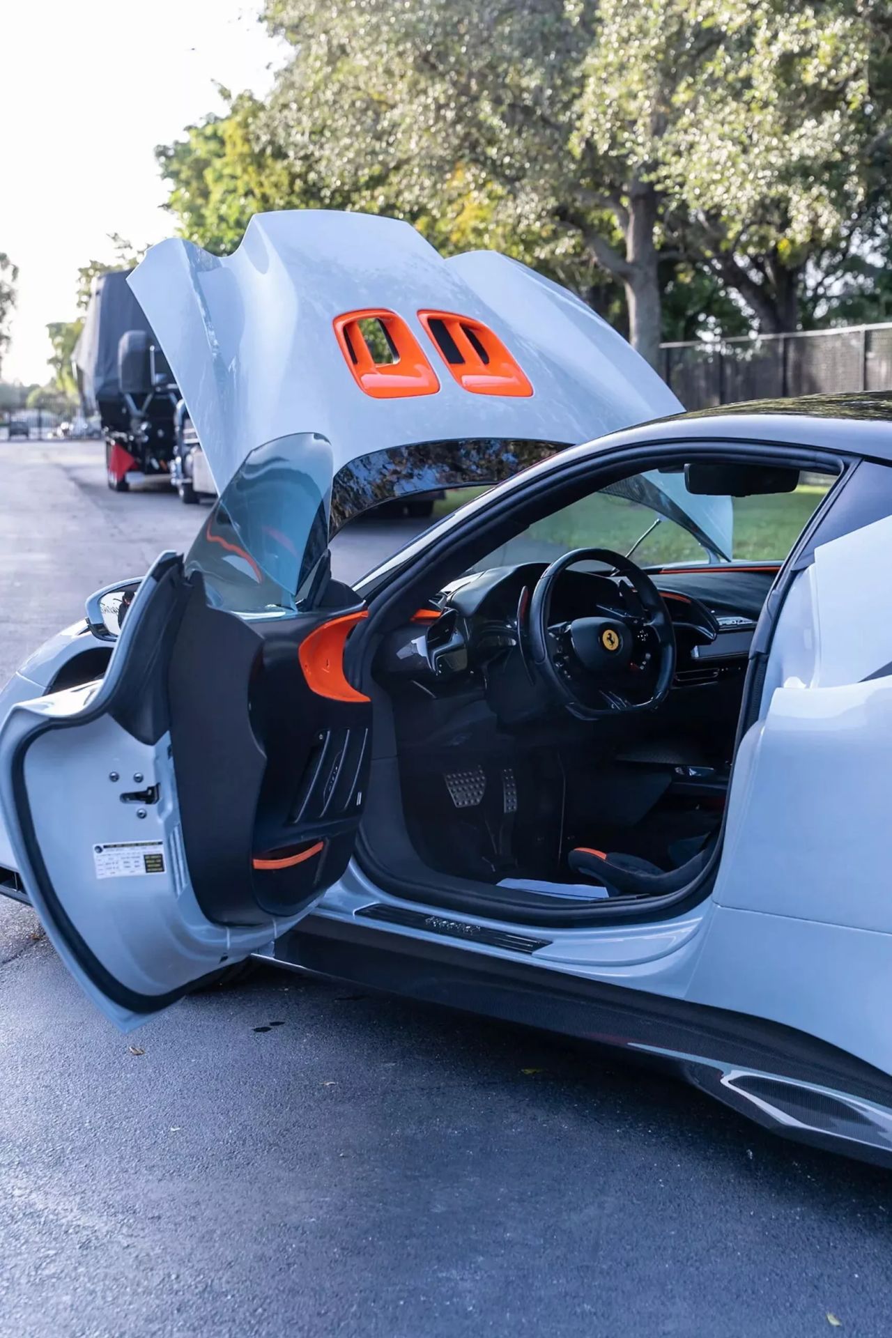 2024年10月,它首次在美国蒙大拿州怀特菲什市注册,竟以商用车身份登记了两周,随后被第二位蒙大拿车主接手。仅持有两个月后,车辆被送至圣地亚哥法拉利经销商处保养,2025年1月便迎来第三位车主,这位车主算是“最认真”的使用者,让车辆里程来到1800英里(约2897公里),没有让它沦为单纯的“摆拍道具”。但好景不长,7月完成二次保养后,9月它便在加州穆列塔市挂牌出售,两个月后流转至佛罗里达州经销商手中;11月20日,第四任车主在迈阿密海滩上牌,仅仅18天后就将其转手,最终在拍卖平台以170万美元(不含手续费)成交,迎来第五任主人。