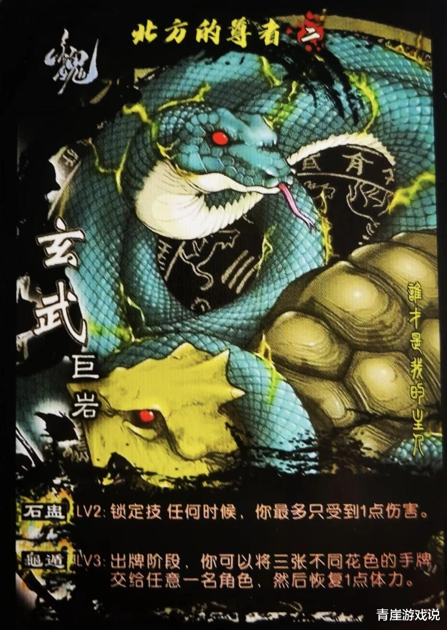 第四位神兽是玄武,称号是的尊者。【石盅】相当于自带了一个白银狮子,【龟盾】则是交给队友三张不同花色的牌,然后回复一点血量。玄武的技能不强,甚至是不如一个装备了白银狮子的标刘备!虽说辅助武将就不看强度,但也着实一般。