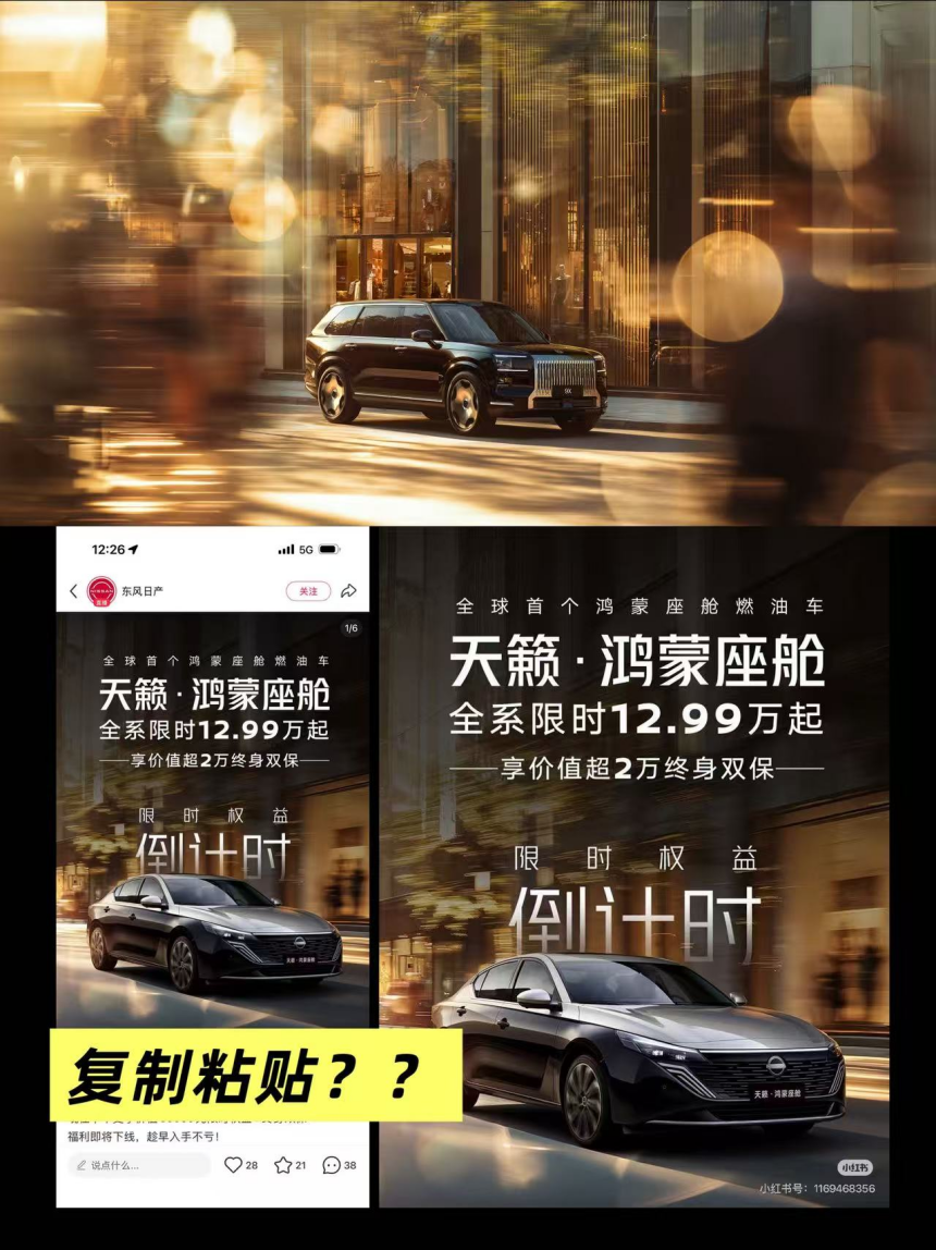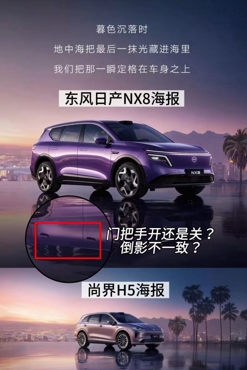 东风日产好歹是合资大厂,一款新车的宣发海报,至于敷衍到抄作业都懒得认真抄吗?