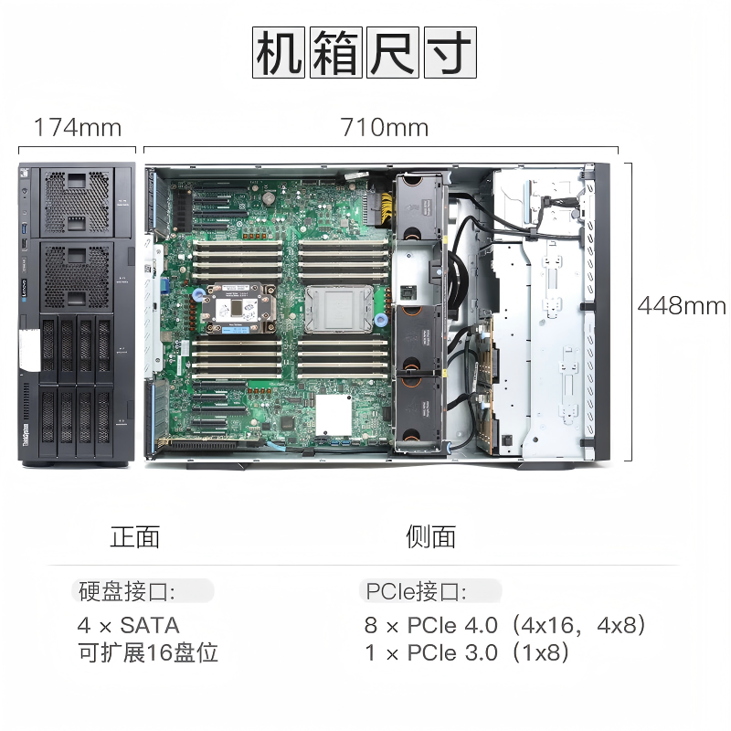 GPU算力扩展:8个PCIe 4.0插槽支持4块双宽GPU(如RTX A6000 48G),满足AI推理、深度学习等高密度计算需求,某科研团队用它搭建的图像识别平台,模型训练效率提升3倍。