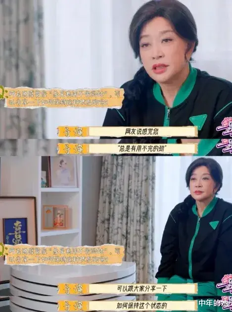 在综艺节目中,她在高原上坚持跑步,对28岁的年轻人说:“你不跑就掉队吧。”