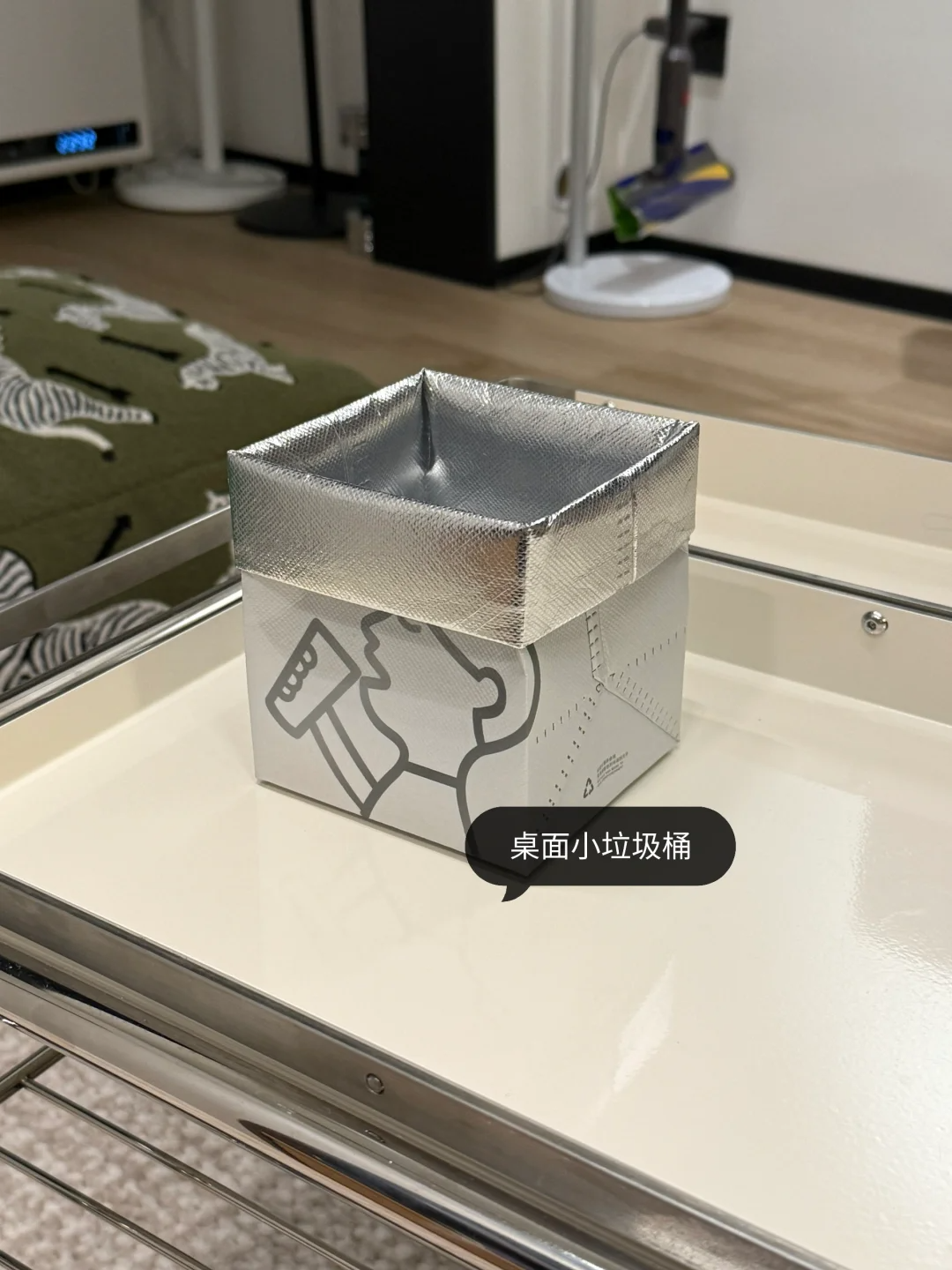 不用花钱去买桌面垃圾桶,用一个奶茶袋子就解决,将奶茶袋子向下弯折几周,然后放在桌面,同时垃圾袋就会可以代替桌面垃圾桶,