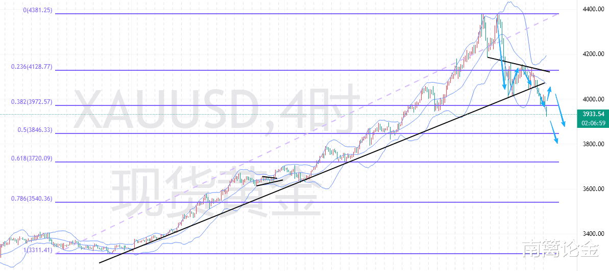 现在的情况跟之前是反了个的,之前是头都不回的上涨,现在是头都不回的下跌。在这种参考当中,各位要多长一个心眼,欧盘跟亚盘砸盘每次都在的。日内先去关注一下下方3930~3910的支撑情况。若再次失守,则较快的速度会抵达3870左右。