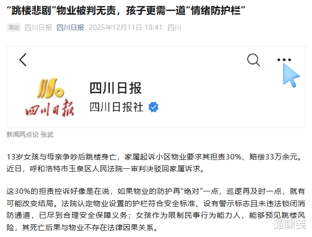 对比此前两起案例,更能看清这种判决的危害性。呼和浩特13岁女孩跳楼案中,家属以“物业防护不足”索赔33万,法院明确判决“护栏符合标准、无法律因果关系”,驳回诉求,清晰传递了“责任自负”的导向;而成都网约车碰瓷案中,法院以诈骗罪判处司机有期徒刑,彰显了“打击恶意索赔”的决心。