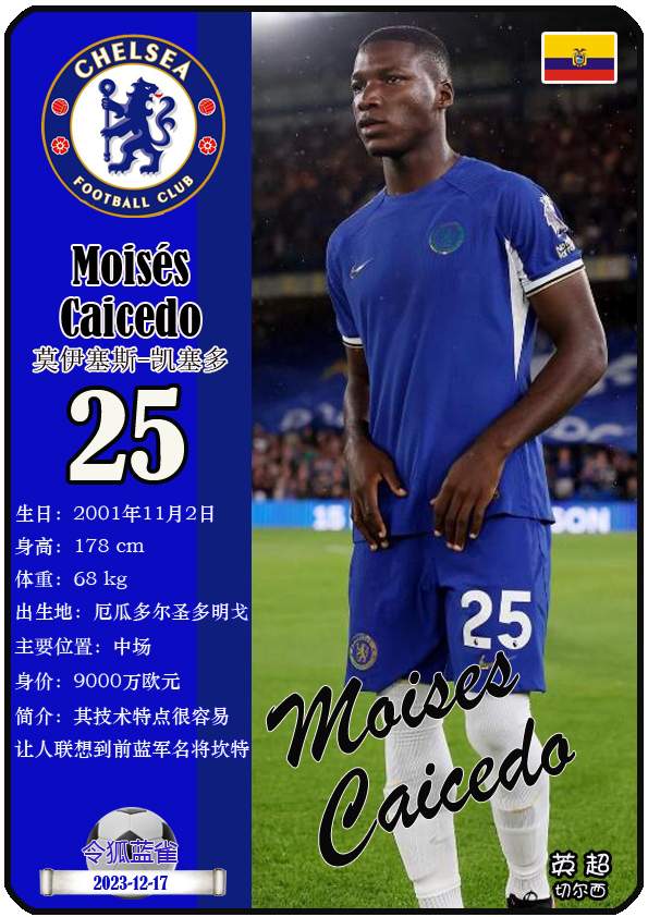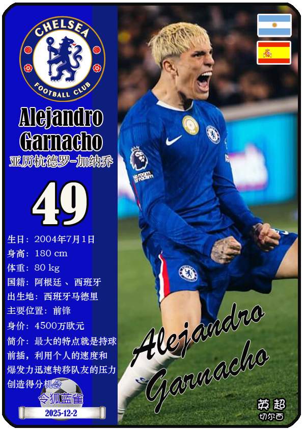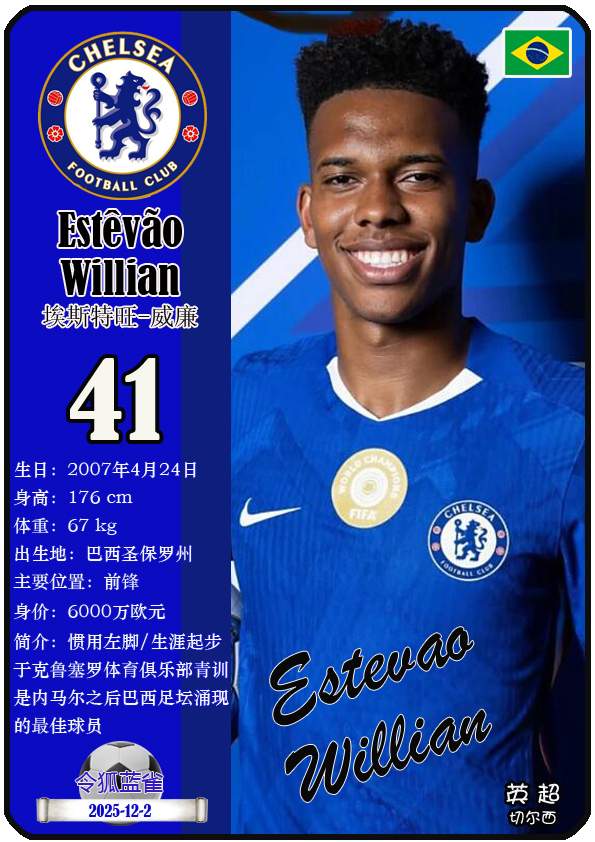英超切尔西足球俱乐部成立于1905年3月10日,距今已有120年历史。截至2025年12月3日,球队主教练是恩佐-马雷斯卡,队内拥有球员科尔-帕尔默、利阿姆-德拉普、佩德罗-内托等。本期以球星卡的形式展示目前英超切尔西足球俱乐部的28名球员(按球衣号码排序):