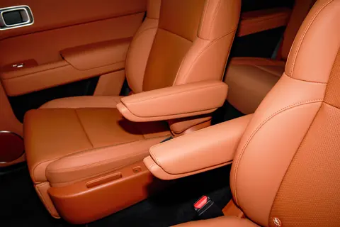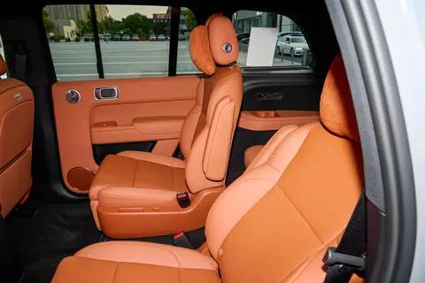 理想 L9 的内饰走的是 “豪华路线”,Nappa 真皮座椅摸着手感很软,搭配实木饰板和麂皮顶棚,看着就很有质感。二排的双皇后座椅是亮点,带电动腿托和 12 向调节,把腿托打开、座椅往后仰,长途乘坐的时候能很好地放松腿部。而且座椅还支持加热、通风、按摩,有 5 种按摩模式,夏天坐不会闷汗,冬天坐也不会冻屁股,舒适性体验也很不错。