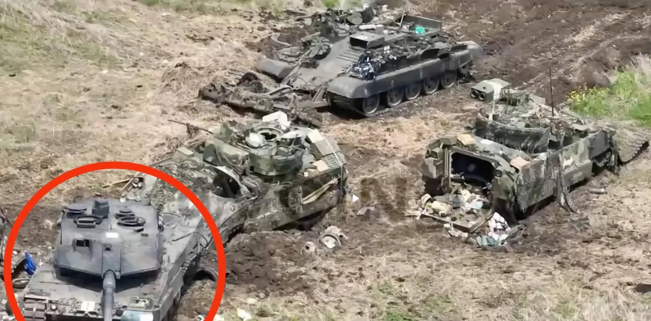乌军豹2坦克和数辆步兵战车、扫雷车全部被击毁,就是地雷的杰作