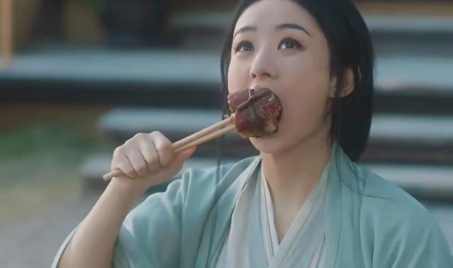 如今又在《与凤行》中吃红烧肉,嘴巴张得老大,恨不得把一整块肉都塞进嘴里,就算嘴角全是油腻也不在乎,让人看了口水直流