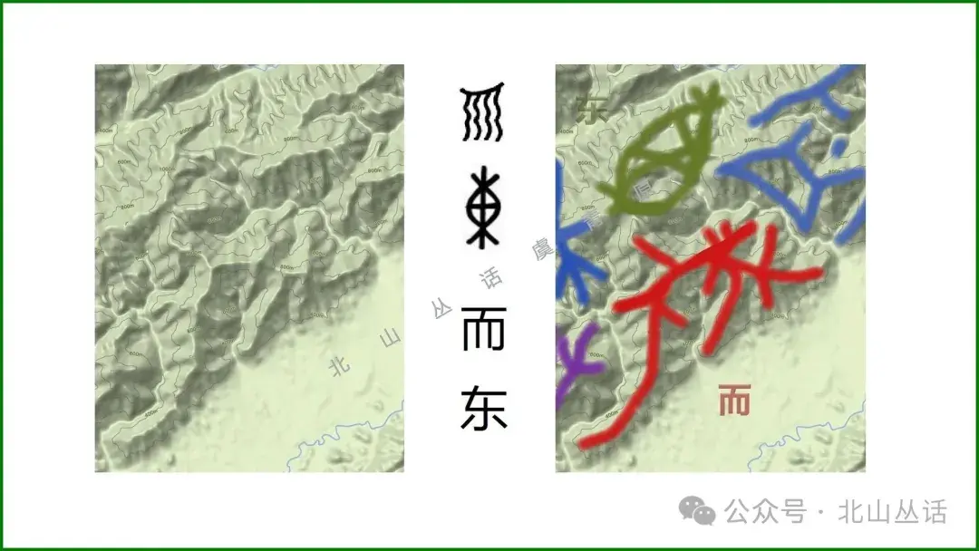 都庞岭寻西王母,鬼崽岭觅三青鸟。回顾一下笔者从八月初就开始申明的山海文观点。山海经中的主要文字,包括山、水、神、人、动物、植物、玉石、矿产等,都对应了山脊线的形状,这种象形文字称为“山海文”。甲骨文是由山海文演变而来的,很多文字已经失传。