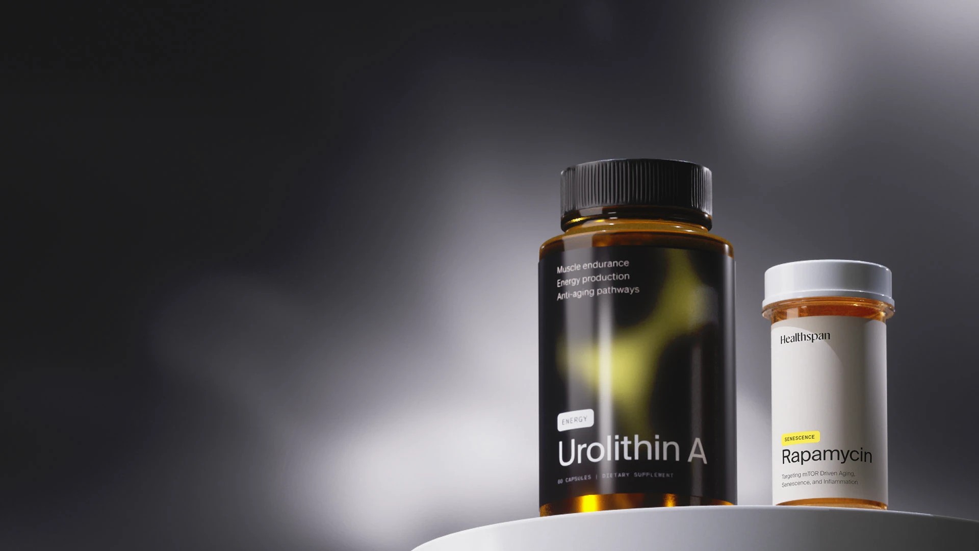 你看那Urolithin A的瓶子,琥珀色的玻璃材质,不仅保护了内部成分的稳定性,还像是一件艺术品,让人忍不住想要摆在家里显眼的位置。标签上的黄色抽象“Y”字形图案,就像是一个神秘的能量符号,暗示着带来的活力与年轻。而Rapamycin的瓶子,简洁的白色标签搭配黑色文字,清晰明了,专业感十足。
