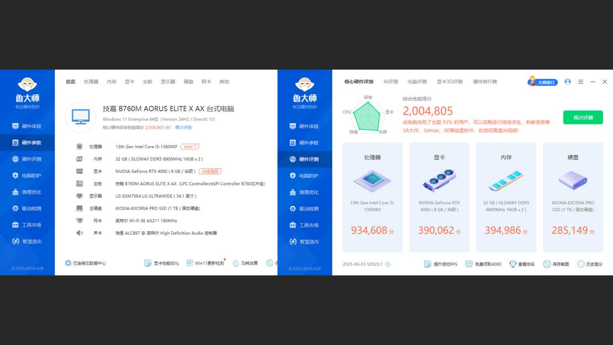 照例先附上测试平台的硬件配置,也是我日常工作用的主力机,鲁大师综合跑分200万+。