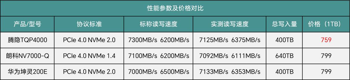 现阶段攒机主要以PCIe 4.0协议的SSD为主,兼容性、性能和价格相对均衡。PCIe 5.0的SSD虽然性能更强,但需要更高规格的主板支持,再加上自身的价格过高,只有少数对不差钱或者对性能有极致需求的用户才会选择。在主流的国产SSD当中,腾隐TQP4000、朗科NV7000-Q和华为坤灵200E是三款不错的产品,这篇文章就来详细测试对比这三款SSD的性能差距,即有性能跑分,也有实际体验,希望可以帮大家选到合适的产品。