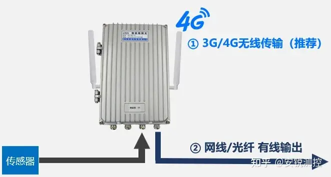 采集层采用4G智能采集网关,网关集成了数据采集模块、边缘计算模块、供电模块及据传输模块。可实现对各类传感器的数据采集、并将数据进行初步计算后通过4G无线网或有线网络将数据输出到云服务器。