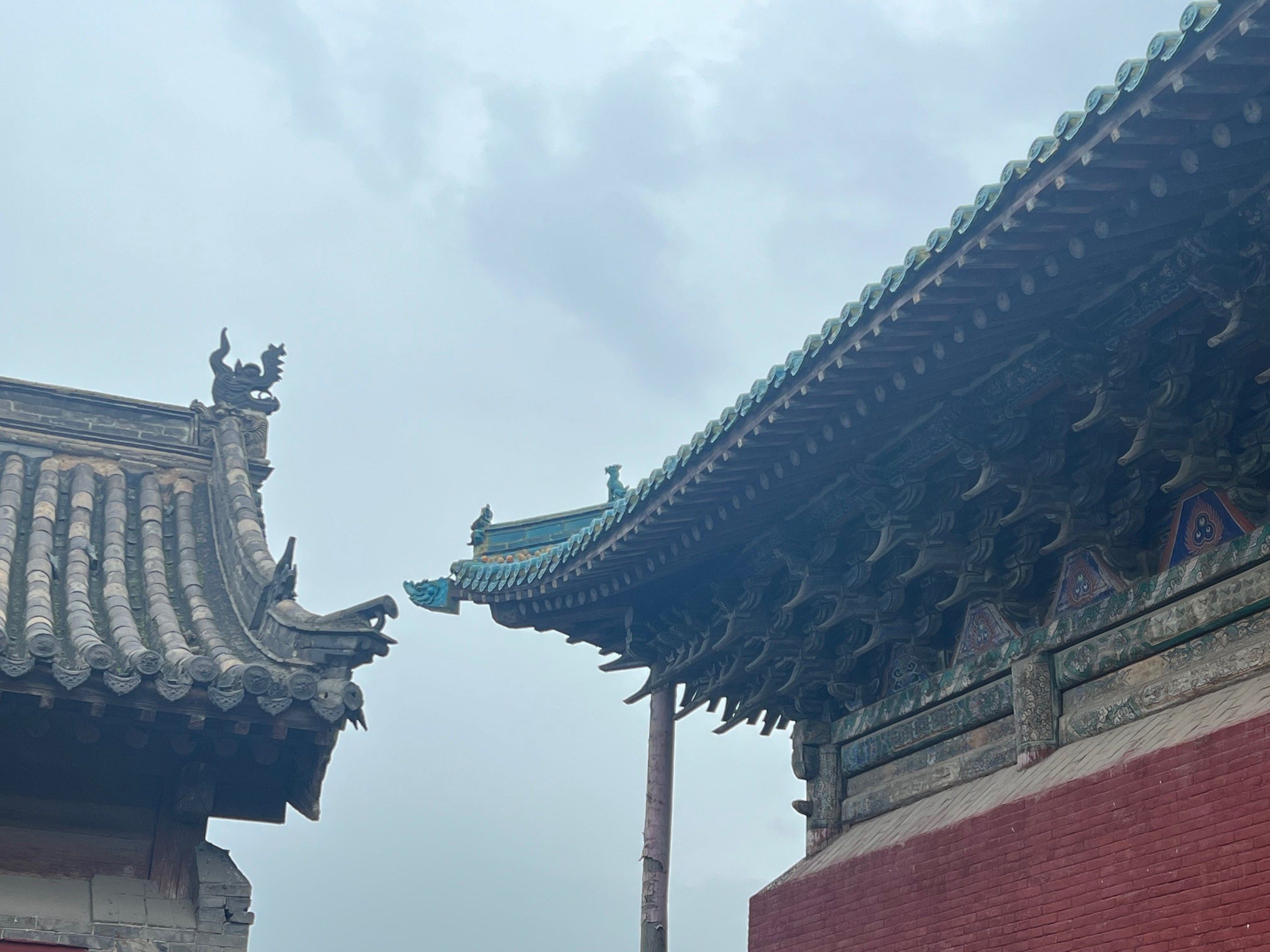 元代木构孤品:大成殿(面阔七间)采用“减柱造”技法(减少内柱12根),梁架保留“斜拱莲花墩”蒙古工匠标记;