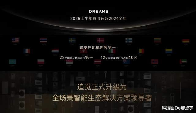 追觅硬核战绩,再次刷新智能科技行业的想象边界!2025高光频现,仅用半年远超2024年全年营收,全球24个国家及地区市场登顶TOP1,成功构建全球高端智能生活新生态,不仅领军行业,更是再次定义新赛道!追觅敢于敢闯入无人区,更敢拿下新天地。