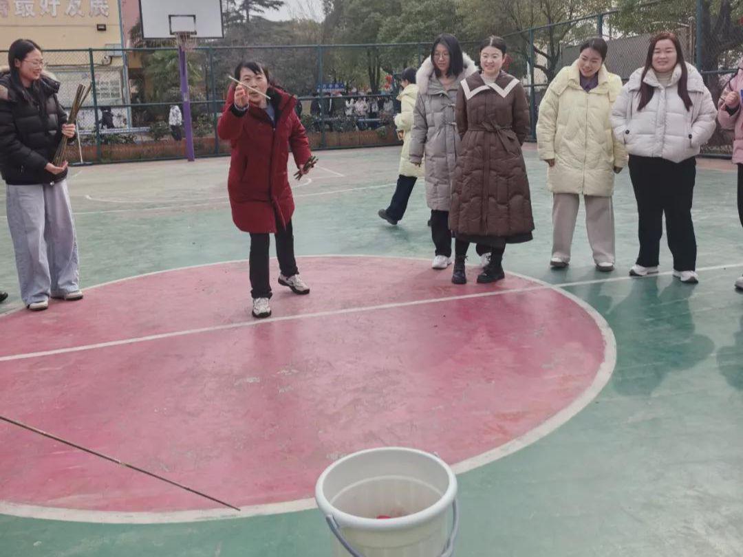 上午十时许,阳光透过枝叶洒向校园,篮球场早已布置妥当,一派热闹欢腾的景象。作为一项传承千年的传统礼仪游戏,投壶兼具趣味性与文化性,既能锻炼专注力,又能传递“投中纳福”的美好寓意,此次活动旨在通过沉浸式体验,让女教职工在轻松愉悦的氛围中释放工作压力,增进彼此情谊,进一步凝聚校园巾帼力量。