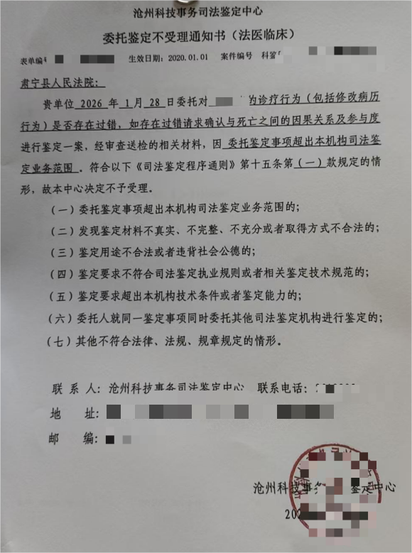 据悉,在司法鉴定确认病历修改后,法院曾先后向多家鉴定中心申请医疗损害鉴定,但均被上述机构不予受理,截至目前,该事件的医疗损害鉴定全线受阻,相关诉讼工作无法正常推进,患者家属的合法权益尚未得到有效维护。