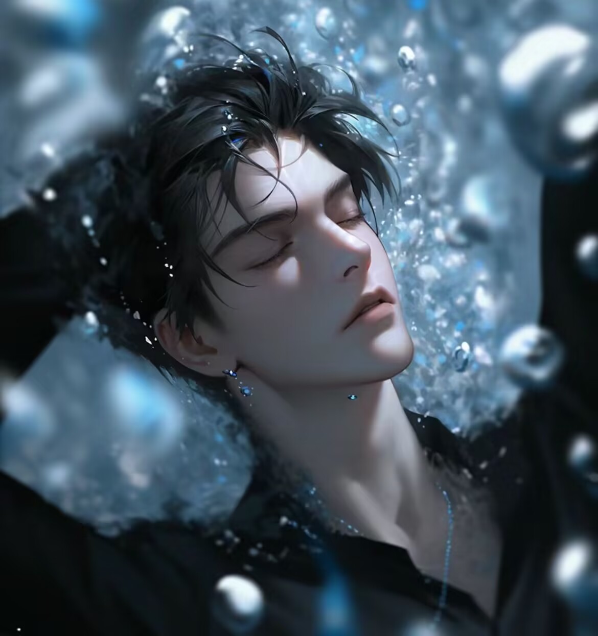 水顺着她的锁骨蜿蜒滴下,引入深处。