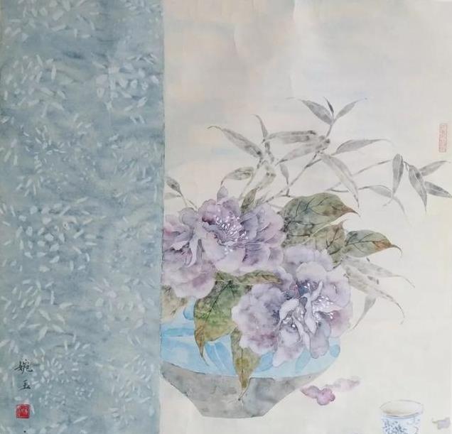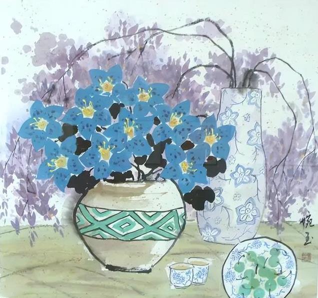 闽东才女马婉玉,继承家学,肆意丹青,为桑梓艺苑勤耕,受同道称赏,其画作在传统中大胆出新,引装饰之美构,融色彩之营养,多取青花古甁、民居窗枫、蓝印花布,珍花异草为题材,构织画面,构成颇新颖,景物刻划入微,色调情逸冷艳,古味斑驳中透清雅恬静之气息。其治艺虔诚,为人真诚,才德双馨,诚吾闽南得女画家。
