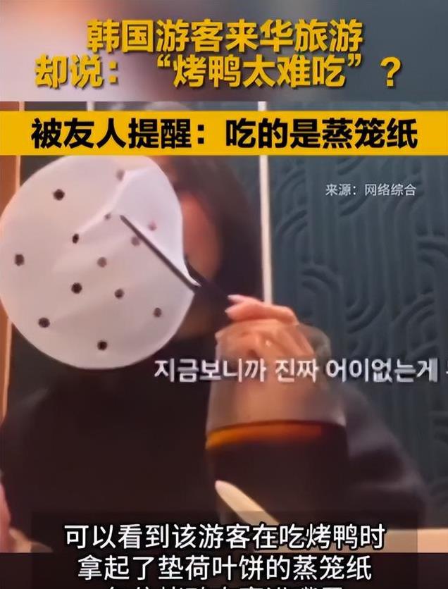 一对韩国姐妹满怀期待地来到上海旅游,首站居然是奔着北京烤鸭去的。这俩姐妹在网上看到别人大快朵颐地吃着北京烤鸭,那画面馋得她们心痒痒,于是到了上海就迫不及待地在繁华街头找了家卖北京烤鸭的店,买了一只打算打包带走,还兴致勃勃地录制视频准备好好纪念一番。然而,接下来的剧情可真是让人哭笑不得。姐妹俩刚吃第一口,脸上就露出了难以下咽的表情,还口无遮拦地吐槽:“烤鸭太难吃了,中国人啥都吃,这也太离谱了。”那一脸嫌弃的模样,仿佛遭受了多大的“美食灾难”。一位好心的中国游客实在看不下去了,上前提醒她们,这俩姐妹才恍然大悟,原来自己居然误把卷饼上的蒸笼纸当成饼皮给吃了!这瞬间的尴尬呀,简直能溢出屏幕。