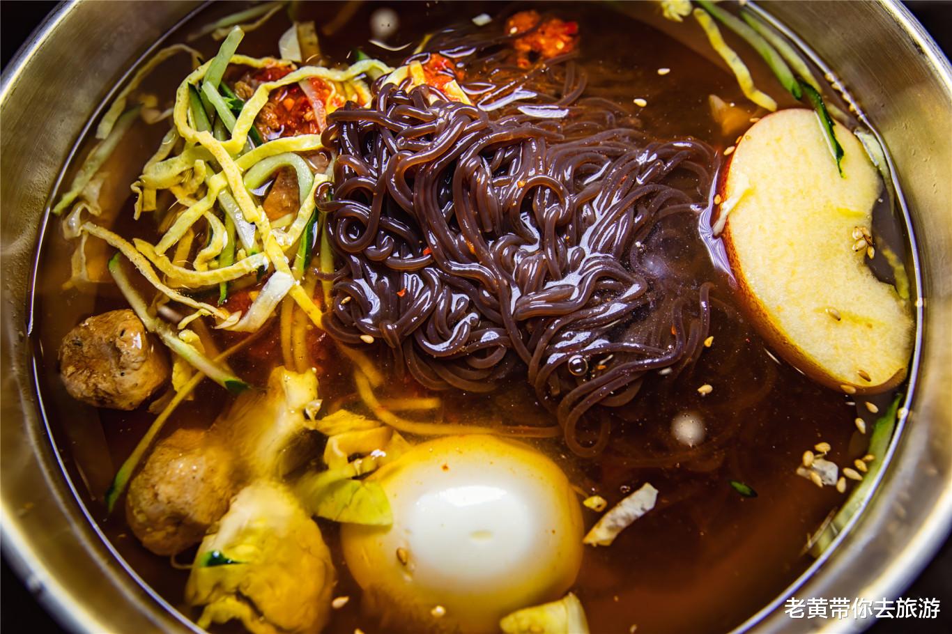 2,体验朝鲜族美食。首先给大家说明一下,朝鲜族非常隆重的款待,那就是吃顿狗肉。但这玩意,并不是所有人能接受,特别是那些比较有爱心的小姐姐,说到狗肉那是嗤之以鼻,深恶痛绝。那行,避开这个,我们谈一些没有情感障碍的美食。 冷面,这也是朝鲜族那边比较有代表性的。 再其次是韩式料理,比如拌饭,烤肉啥的。这和南方的韩国料理店不一样,当地的食材真的好吃得多。最后就是东北菜,锅包肉这些也是很好吃的。