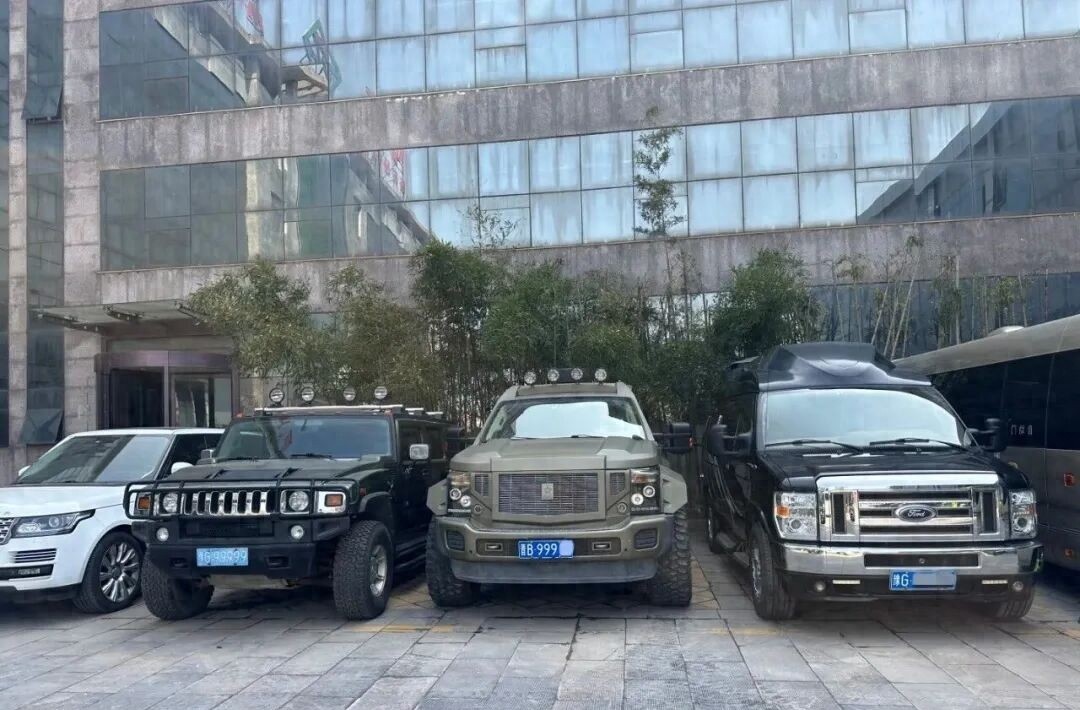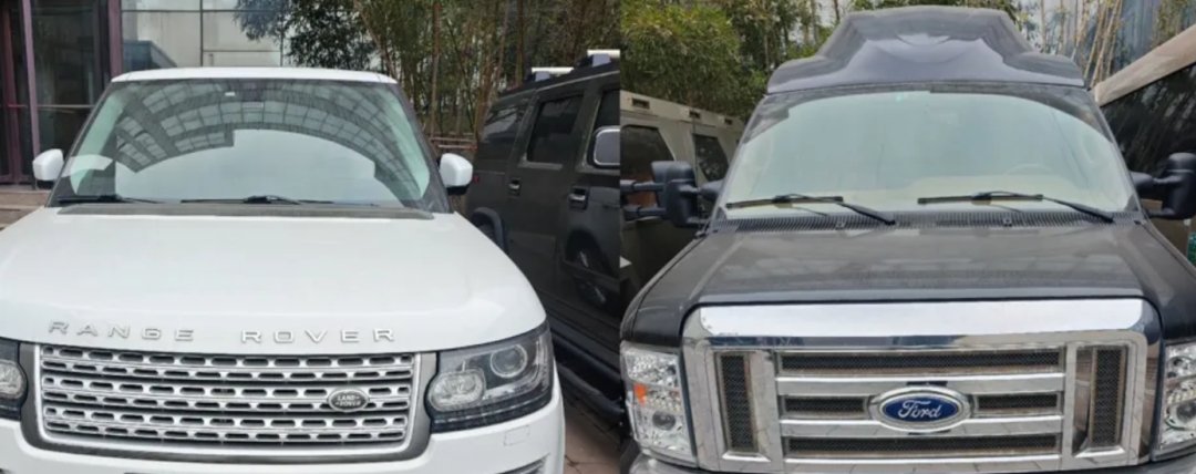 这五辆车由大到小依次排列,涵盖了路虎揽胜、悍马H2、乔治巴顿、福特E350以及丰田考斯特,这些车型无一例外都属于大型车辆,其中不乏稀有且价格不菲的硬派座驾,彰显着公司的实力与品味。