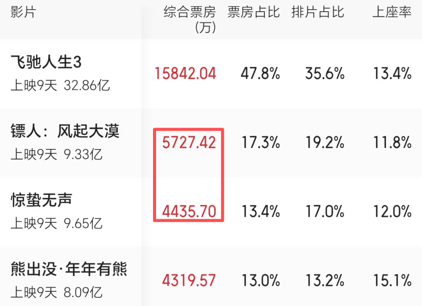 要说输的最惨的,当属张艺谋的《惊蛰无声》,谁能想到,老谋子四战春节档,竟然“打”出了口碑垫底的战绩,除此之外日票房也是一路滑坡,除了开画前三天,基本都被吴京的《镖人》反超压制,亚军之位即将不保。
