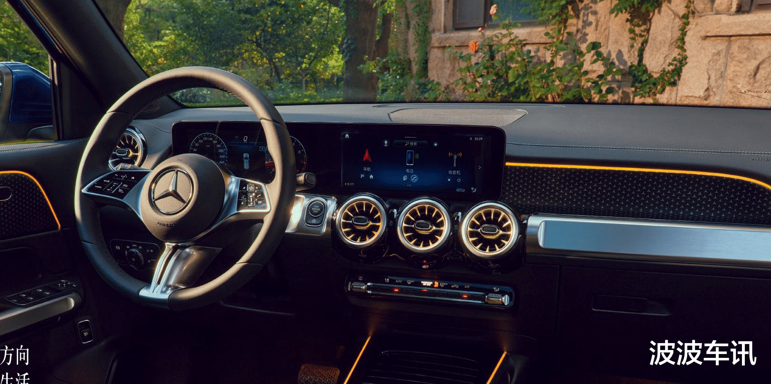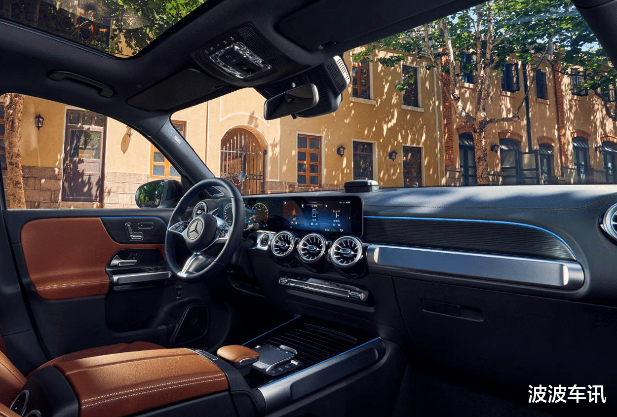 在内饰方面,我们可以看到新车采用的是非常干练的车身轮廓,新车的中间的位置采用的是涡喷风格的空调出风口,副驾驶的一侧还有硬气的面板装饰,方向盘的造型也非常的干练。新车采用的是2+3+2的7座椅的布局,顶部还有全景天幕,整个内饰氛围表现也是非常不错的。动力方面,新款奔驰GLB 200搭载的是1.3T发动机,最大输出163马力,峰值扭矩270牛·米,采用7速湿式双离合变速箱;新款奔驰GLB 220搭载的是2.0T发动机+48伏电机,发动机最大输出功率为190马力,最大扭矩300牛·米,采用8速湿式双离合变速箱。