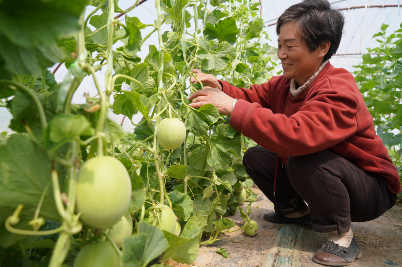 李改珍蹲在地头算起了账:“3月初头茬瓜开卖,一斤8块钱,一亩头茬就挣了1万多块。”