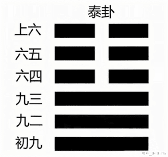 “道生一,一生二,二生三,三生万物。”这个天道衍生万物的过程就可以用《易》中的卦象来描述:混沌生阴阳(坤☷乾☰),乾坤成泰卦,泰卦生万物。泰卦彖辞曰:“天地交而万物通。”“万物负阴而抱阳,冲气以为和”正好与泰卦的卦象相符。泰卦下乾上坤,乾的卦画为阳爻,坤的卦画为阴爻,中间九三为君子爻,九三上背负着阴、下抱守着阳,维护着全局的和谐安定。