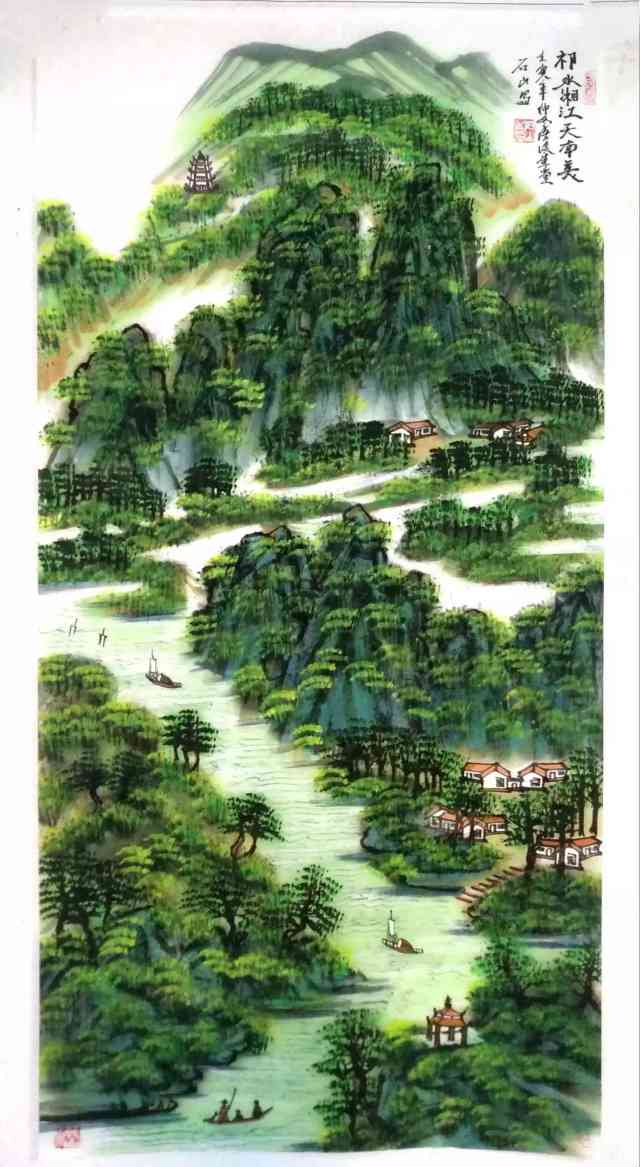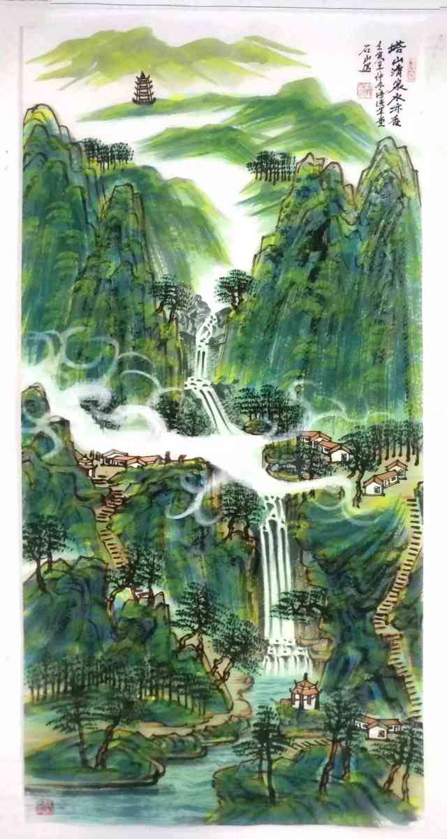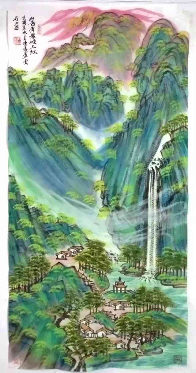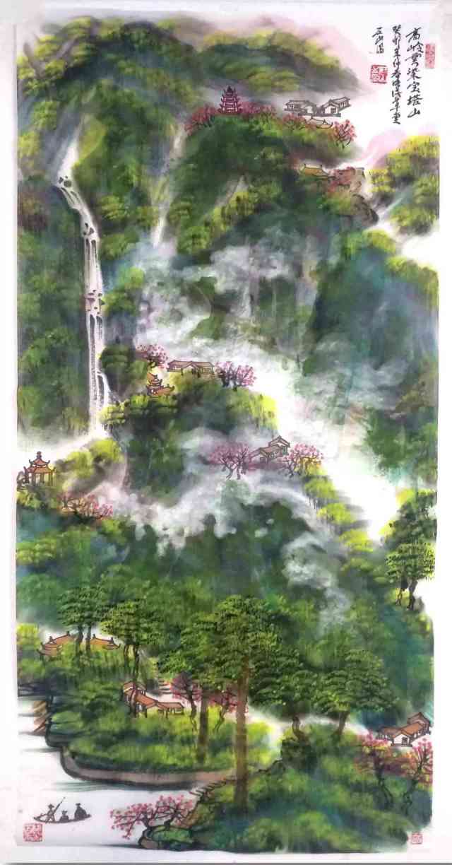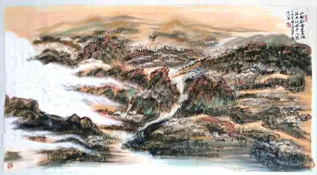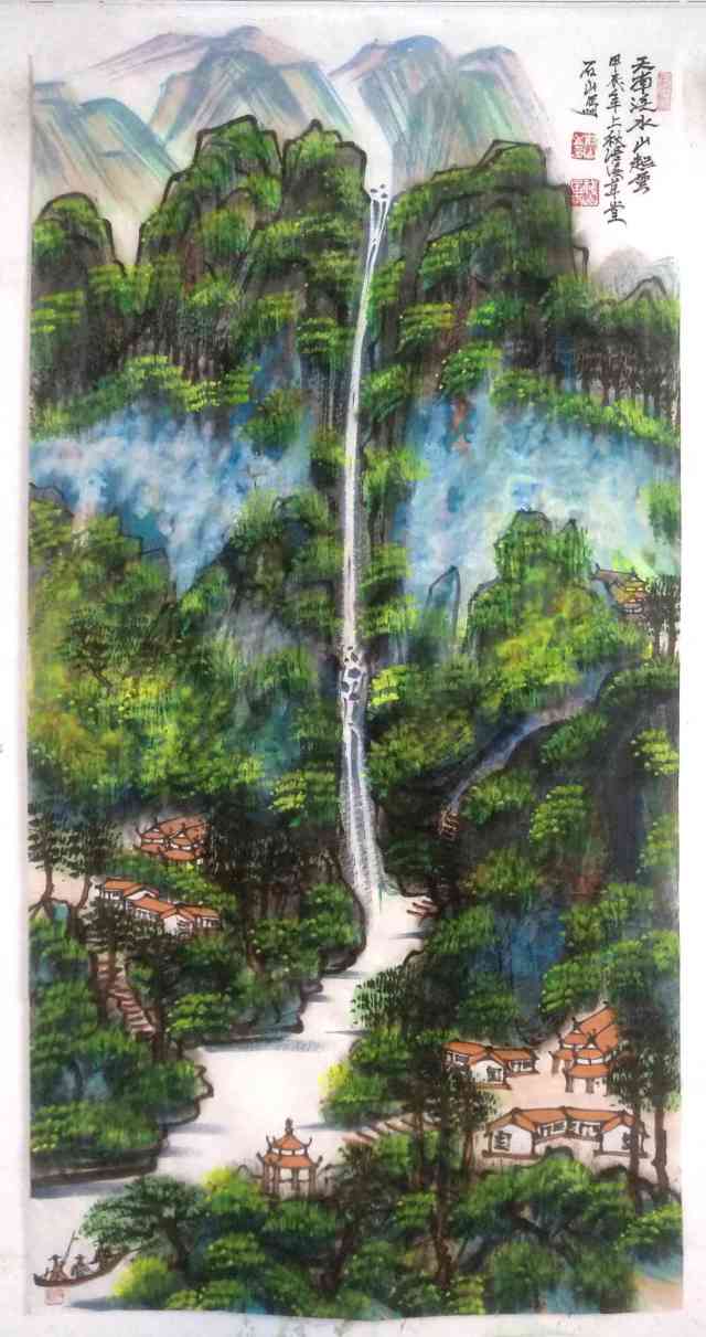 画家作画,是为自己心灵留影。谢石山的春染江南系列所描绘的山水世界,通过不断反复超越自己的写意,表现幽绝的墨色氤氲色彩境界,将山水画的程式融入泼墨、泼彩、破墨与干笔皴擦、湿笔渲染等笔墨语言,综合呈现了缤纷多彩的艺术形象。画家对传统山水画的苦苦追求,通过画笔体现的禅意“无相法门,无我无法”,让时空追求超越永恒的内涵,达到了惊人心魄的视角冲击力,它体现的现代艺术是中国的、也是世界的。