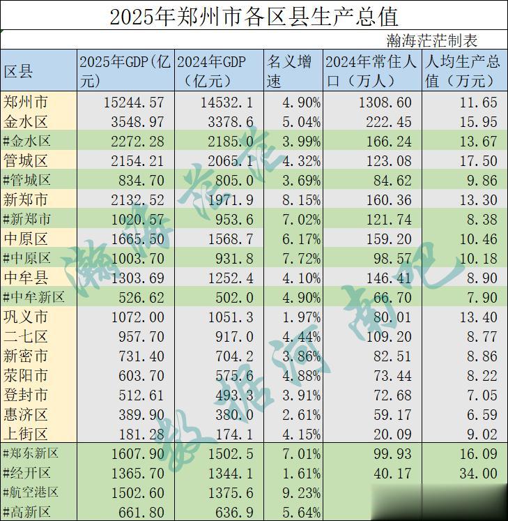 我们前几天把郑州市16个区县功能区生产总值整理出来了。今天,我们来看下2025年郑州市民政口径的各区县生产总值。