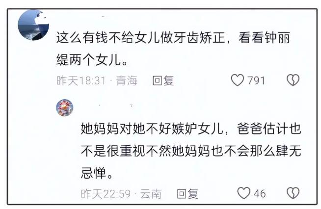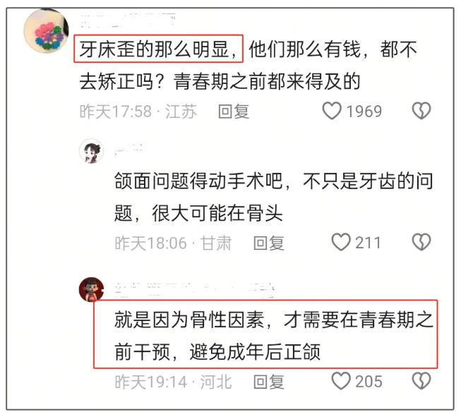 一些具备医学知识或对颌面结构较为了解的网友则进一步指出,森碟可能存在牙床偏斜的问题,并质疑田亮夫妇为何不为女儿进行矫正治疗。