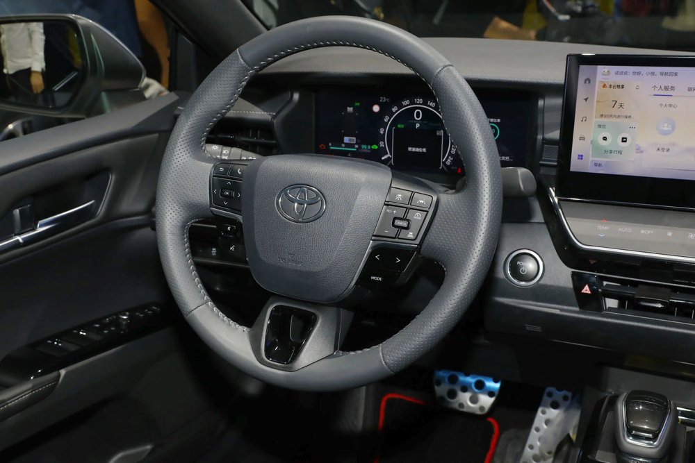 内饰同样延续家族设计,配备 12.3 寸数位化仪表和 12.3 寸中控大屏幕,使座舱更现代化、更豪华,并保留了大量传统按键和机械式排挡杆,同时全车系也标配了 Toyota Safety Sense 3.0。
