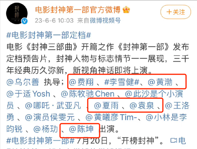 近日,广大电影迷最关注的电影,一定非《封神三部曲》莫属,除了因为该片早在4年前应该上映了,结果一推再推,直到近期才官宣定档时间,可谓是吊足了观众的胃口。