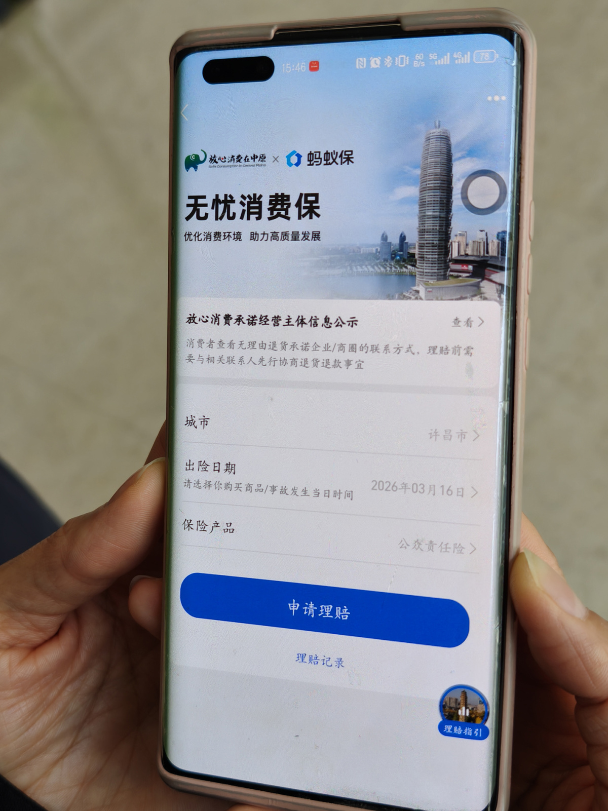 许昌市市场监管部门工作人员告诉记者,“无忧消费险”的理赔相当便捷,在确认了此次受伤老人适用该险种之后,其引导杨先生通过手机进行了理赔操作。首先,打开手机上的支付宝APP,搜索“无忧消费保”,然后,填写相关理赔信息并提交就可以了,不用来回奔波。